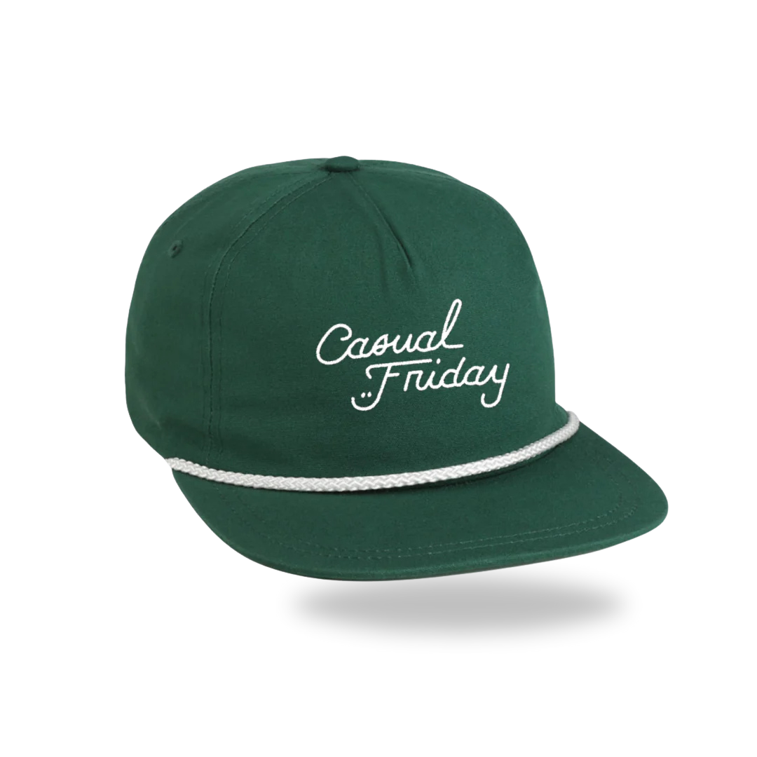 A true classic. Made from garment-washed lightweight cotton canvas, this 5-panel hat brings old-school vibes with a fresh feel. It’s got that iconic woven rope along the front panel for a touch of retro, while the stand-up mesh stay keeps things sharp. The performance moisture-wicking sweatband is ready to keep you cool, even when things heat up. The brown leather back strap with a sleek black metal buckle and eyelet adds a touch of class, and the slight curve to the visor, paired with the green canvas under-visor, makes it perfect for kicking back in style. The OG Rope Hat — because legends never go out of style.